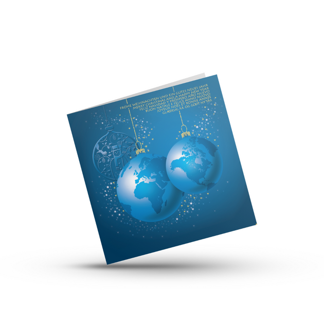 Globe julekugler og glædelig jul på 6 sprog - Med folie effekt
