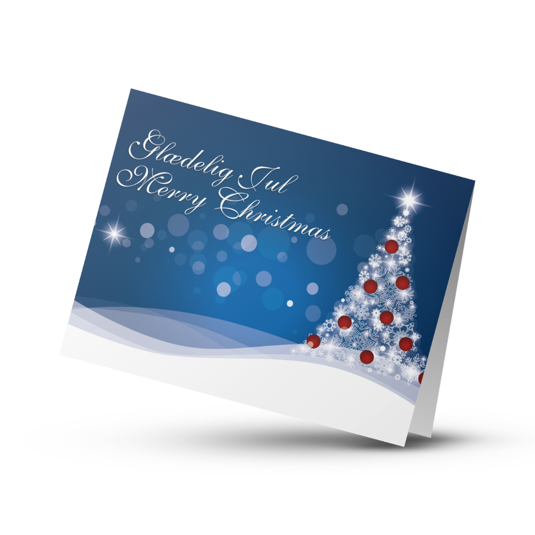 Du kan helt selv personliggøre dit kort i vores editor, hvor du kan tilføje din virksomheds logo til kortet, samt skrive din ønskede hilsen og/eller budskab.