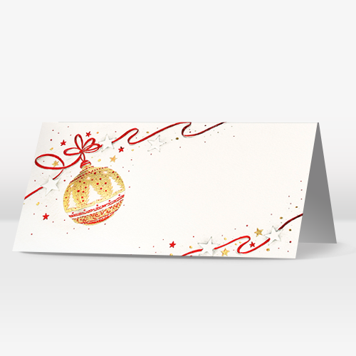 Dobbeltsidet julekort printet på 200gr mat struktureret karton med let prægning, samt rød og guld folie detaljer.