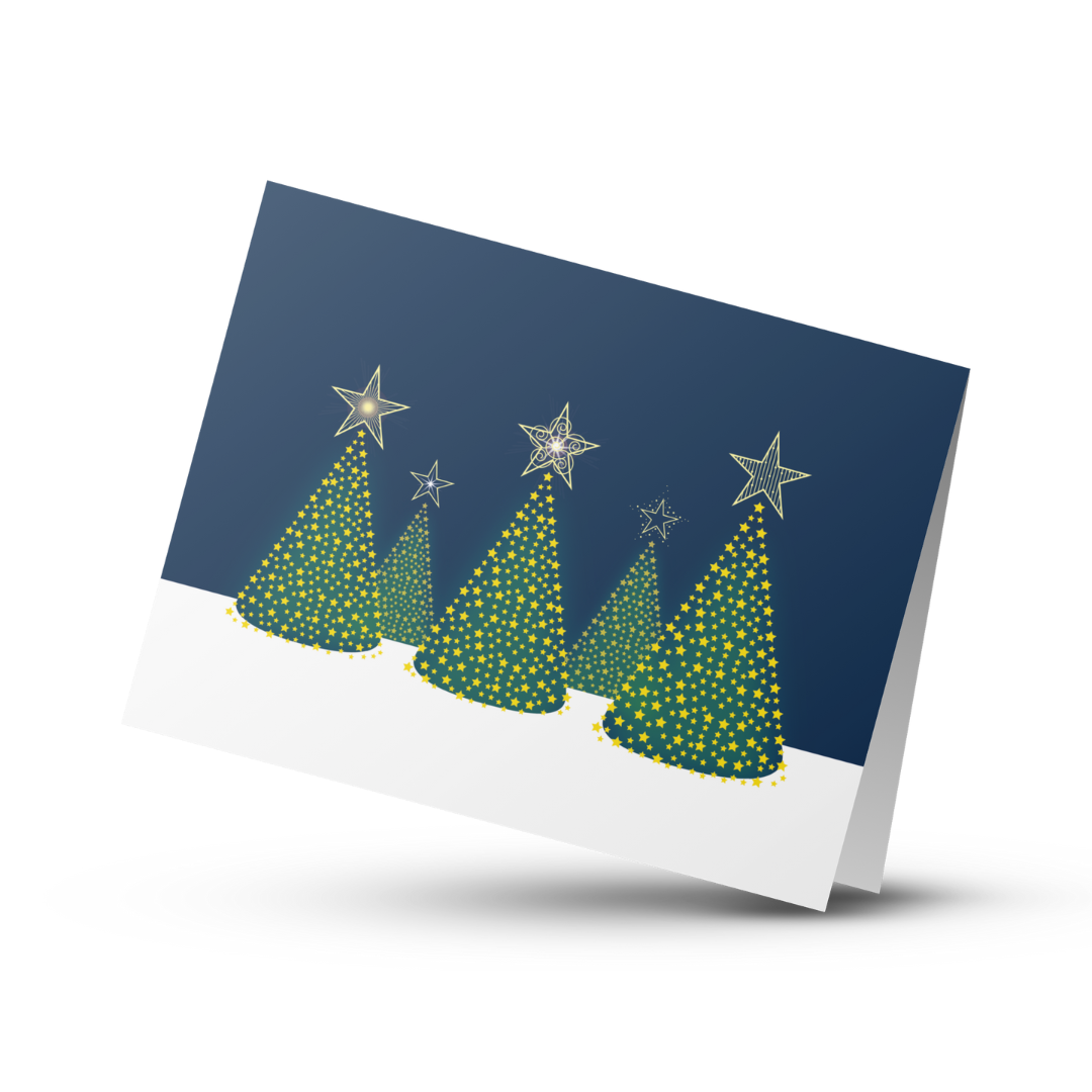 Oven på grafikken påtrykkes folie effekten som et ekstra lag. Lysene på træerne og dele af stjernerne er i folie.