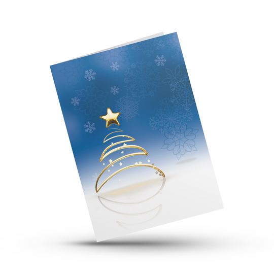 Det foldede kort måler 145x145mm. Juletræet er påtrykt med folie, der giver kortet en ekstra dimension. Vælg mellem guld, som på billedet, eller sølv folie. Der medfølger én kuvert pr. kort. Du kan helt selv personliggøre...Normal pris 21,00 kr -