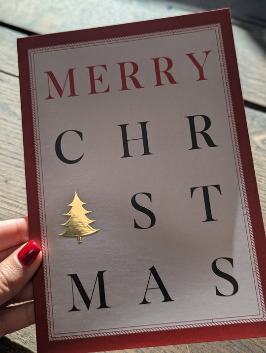 Det foldede kort måler 148x210mm. Juletræet, der forestiller et 'i' er påtrykt oven på grafikken i guld folie. Der medfølger én konvolut pr. kort. Du kan helt selv personliggøre dit kort i vores editor, hvor du...Normal pris 24,00 kr -