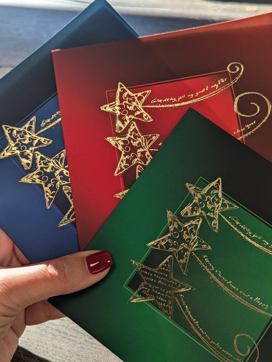 Dobbeltsidet julekort printet på 250gr glat ensidet bestrøget karton med let prægning, samt UV lak og sølv folie detaljer. Der er tiltryk af støttetekst på bagsiden af dette kort. Der medfølger én konvolut pr. kort.Salgspris 15,00 krNormal pris 20,00 kr -