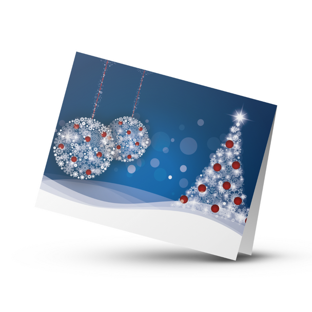 Her finder du vores udvalg af firmajulekort med blålige baggrunde. Den blå baggrund giver julekortene et roligt udtryk, der repræsenterer den smukke vinter dags himmel såvel som i skumringstiden, hvor solen er på vej ned.