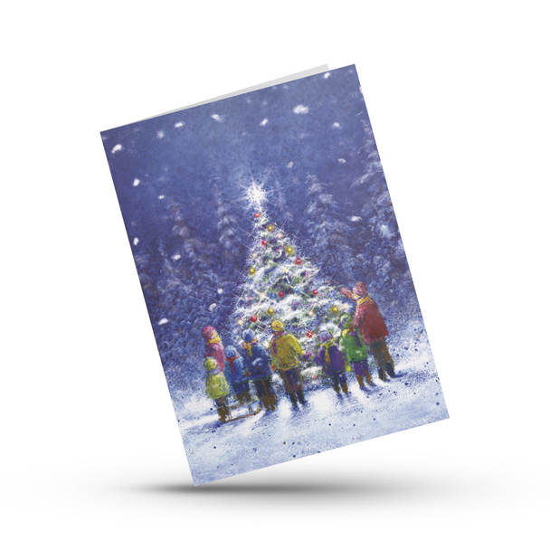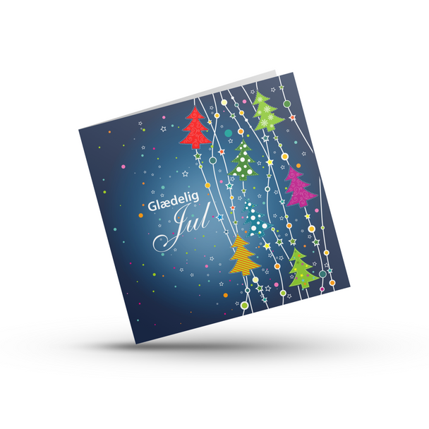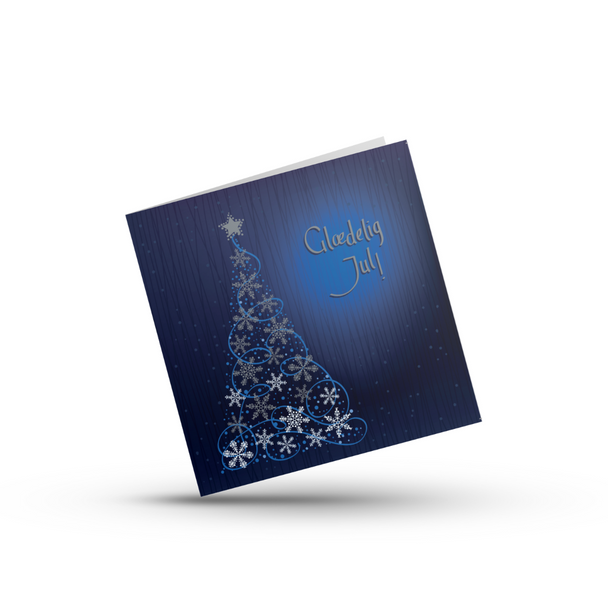 Her finder du vores udvalg af firmajulekort med blålige baggrunde. Den blå baggrund giver julekortene et roligt udtryk, der repræsenterer den smukke vinter dags himmel såvel som i skumringstiden, hvor solen er på vej ned.