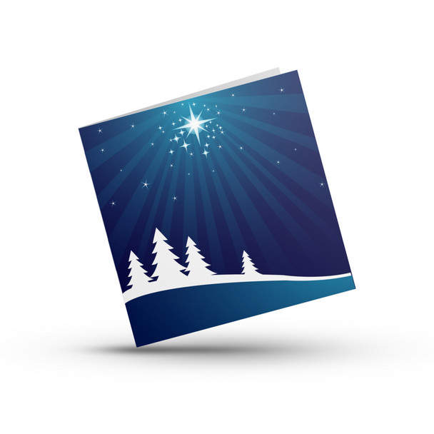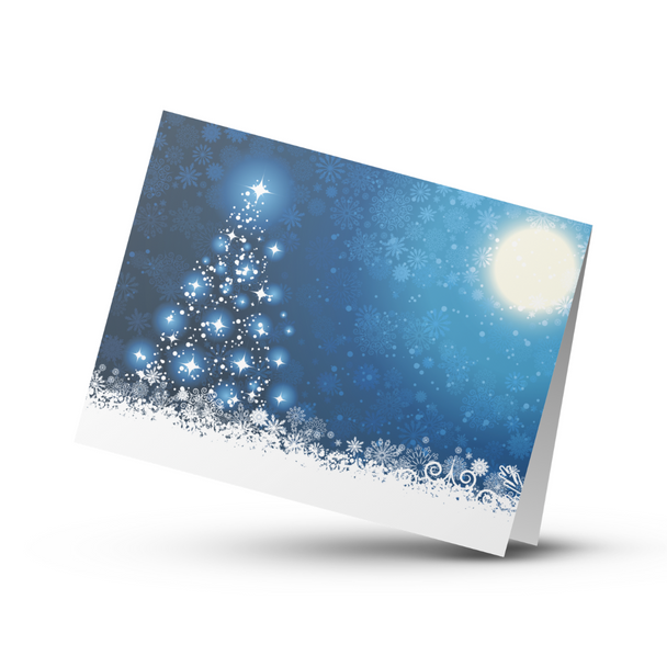 Her finder du vores udvalg af firmajulekort med blålige baggrunde. Den blå baggrund giver julekortene et roligt udtryk, der repræsenterer den smukke vinter dags himmel såvel som i skumringstiden, hvor solen er på vej ned.