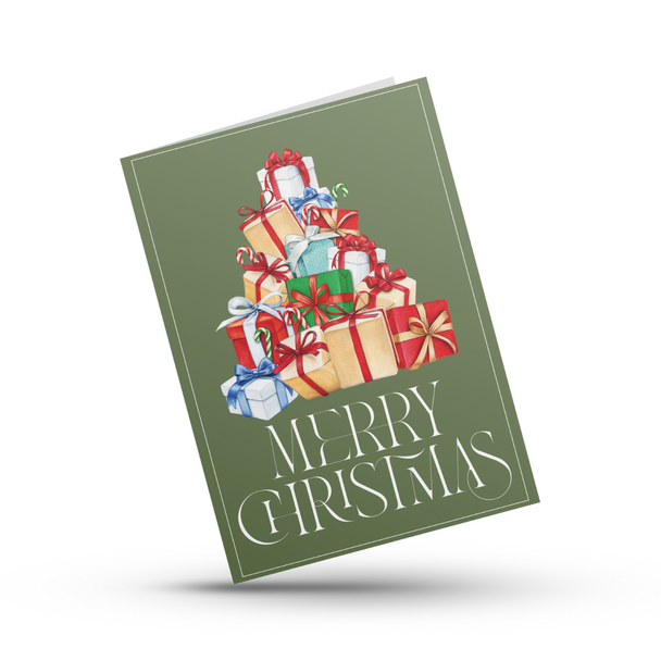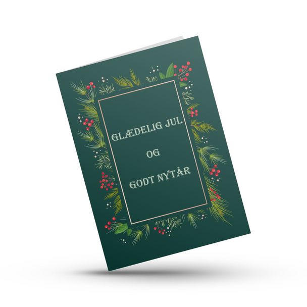 Julekort i grønne nuancer, der giver et udtryk af en ægte julestemning.
