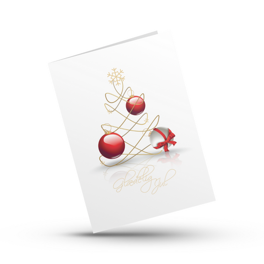 Det foldede kort måler 115x170mm. Folie påtryk indgår som en del af designet på dette kort. Her kommer det til udtryk som selve juletræet samt teksten under. Der medfølger én kuvert pr. kort. Du kan helt selv...Normal pris 21,00 kr