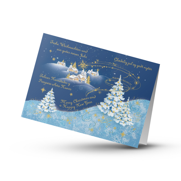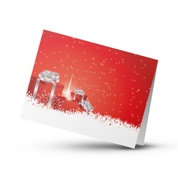 Julekort i det klassiske kort format, vinklet som landskab eller horisontalt.