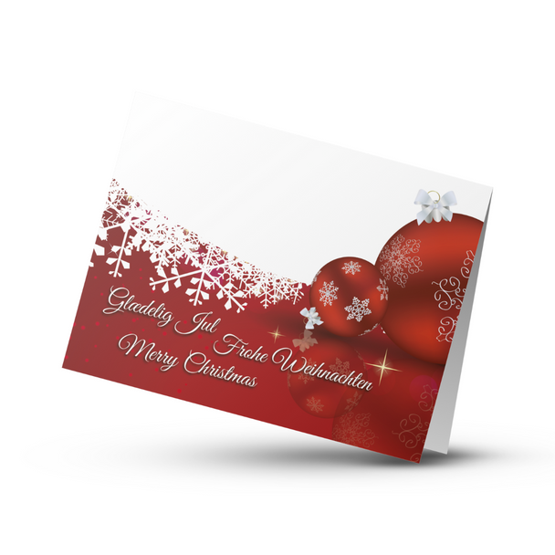 Et større julekort i A5 format, vinklet som landskab eller horisontalt.