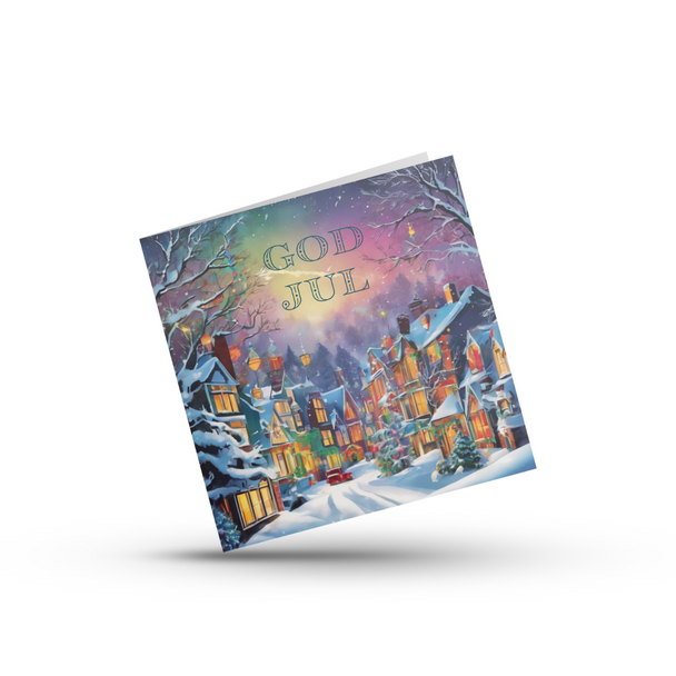 Kvadratiske dobbelte julekort i formatet 145x145mm.