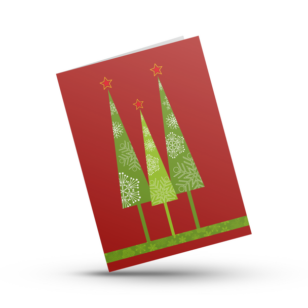 Et firmajulekort i ægte julefarver. Rød må siges for mange at repræsentere julen og derfor er julekortet med røde baggrunde det som mange forbinder med et 'rigtigt' julekort.