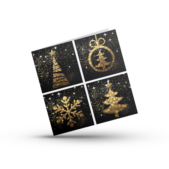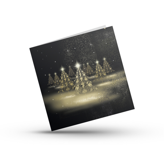 Julekort med sorte baggrunde, der giver kortet et luksuriøst og elegant udtryk med sin mørke base.