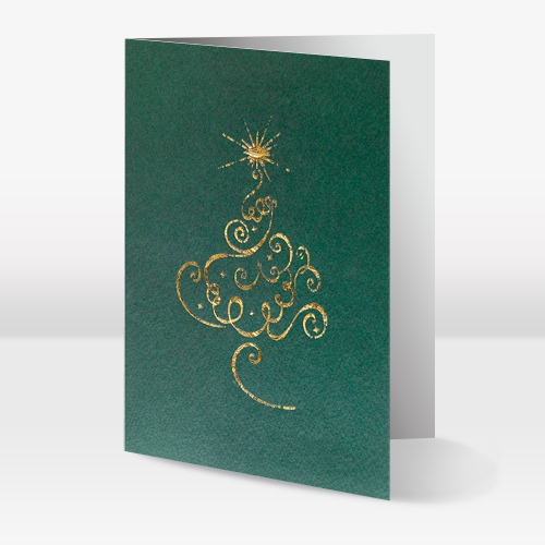 Dobbeltsidet julekort printet på 250gr mat struktureret karton med guld folie detalje.